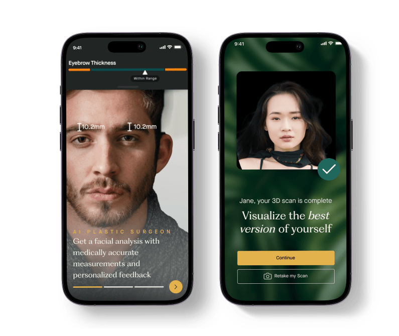 The AI Plastic Surgeon™ measures a user’s unique facial characteristics with hundreds of data points and creates a highly precise and individualized facial evaluation. The results generated are achievable in real life cosmetic procedures and reflect the user's unique features.